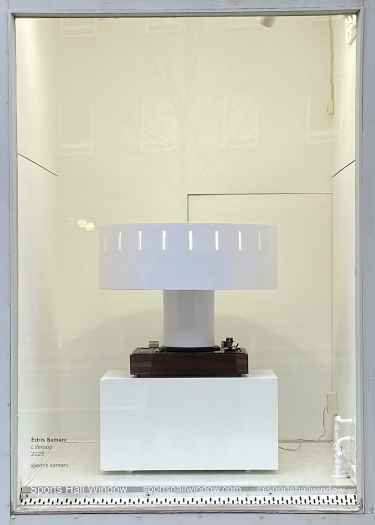 In Edris Samani’s newest work titled Lifeloop created for Sports Hall Window, motion is in focus. The centerpiece is a zoetrope, one of the earliest forms of animation, for which Samani envisioned life as a continuous cycle – wherein everything is connected, transient, with no true beginning or end.